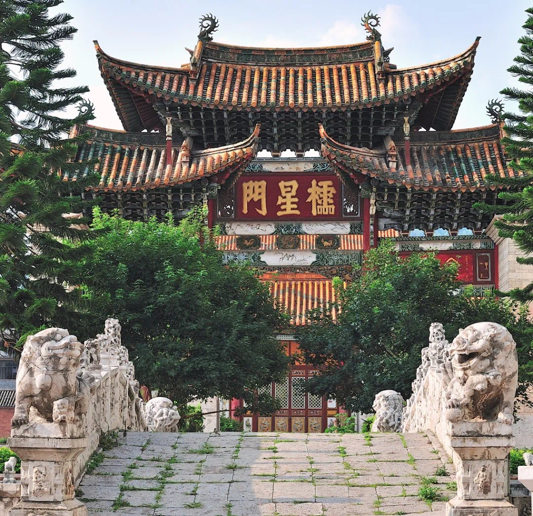 澄江建文庙始于元朝,府城从金莲山麓搬迁至舞凤山下后重建。