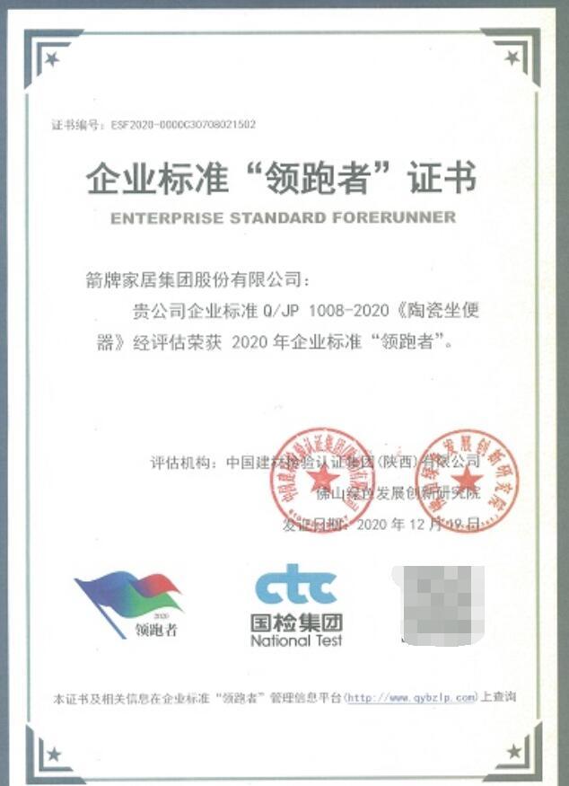 2021年1月1日,由国家市场监督管理总局和国家标准化管理委员会发布、箭牌卫浴参与起草的,国家标准GB 25501-2019《水嘴水效限定值及水效等级》、国家标准GB 28378-2019《淋浴器水效限定值及水效等级》、国家标准GB 30717-2019《蹲便器水效限定值及水效等级》、国家标准GB 28377-2019《小便器水效限定值及水效等》等4项卫浴中国国家标准实施。