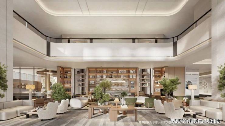 绕过归家大堂的奢石背景墙,一整面近9米高、270º采光的玻璃幕墙豁然出现,将整个中庭的景致无损引入。