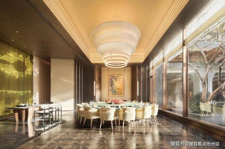 二进门内,水石林木勾勒出园林画框,连廊迂回,步移景异。锦鲤池取意“金玉满堂”,池畔百年树龄的红花继木寓意“鸿运当头”,掩映在花窗后的景致更显东方含蓄之美。