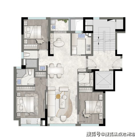 建筑面积约139㎡的四代宅户型,将改善居住提升至新境界。约14.3米面宽可实现餐客厅一体化与南向双套卧,契合多代家庭居住模式。