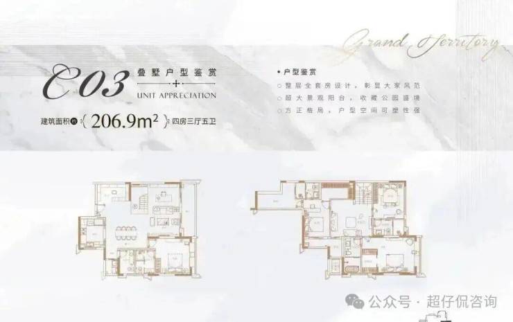 价格区间:总价1200-1900w,面积180-210方,分上中下三叠