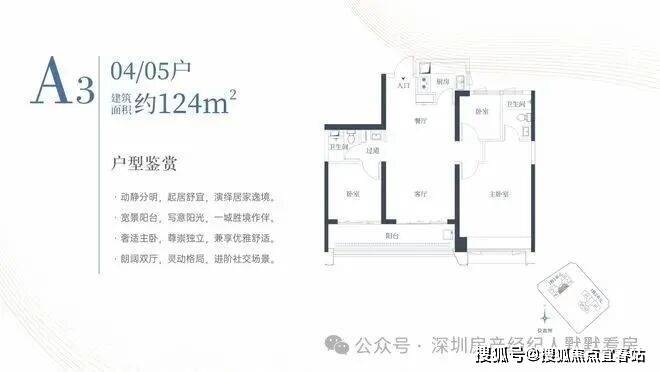 1栋一单元A3户型:面积约为124㎡