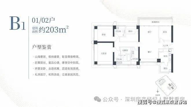 1栋二单元B1户型:面积约为203㎡