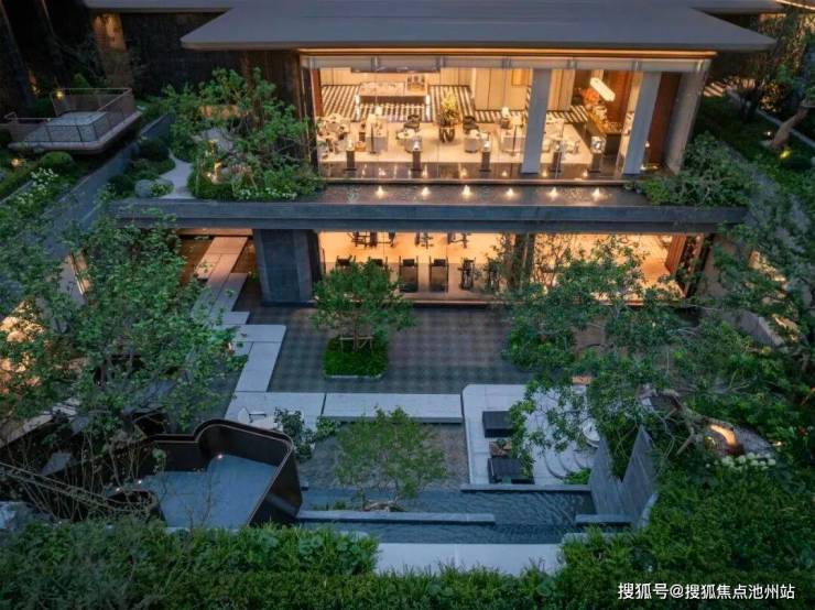 更让人惊喜的是,项目生活馆打破传统平面布局,创新性地将会所与泛会所融为一体,大面积玻璃幕墙消融室内外的界限,把茶室、健身房、瑜伽室、恒温泳池、私宴厅、棋牌室等空间都面向庭院景观,这样的配置,放眼全杭州都难得一见。