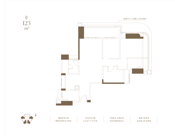 低区4-11层,主推建面约108-123㎡三四房;高区13-37层,主推建面约133-143-177㎡四房,英广·瑧尚售楼处电话4009099108,其中,约133㎡户型北侧可看白云山,约143㎡户型为西南向,约177㎡户型为东南向。