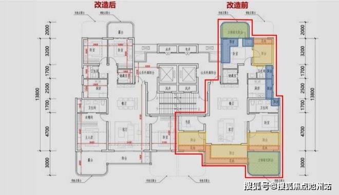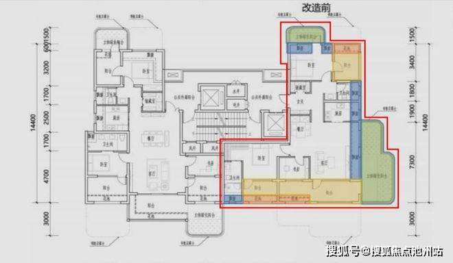 高层中间户是三开间朝南+四叶草的户型,客厅开间5米3,得房率107%,奇偶错层小露台,同时兼顾实用与隐私