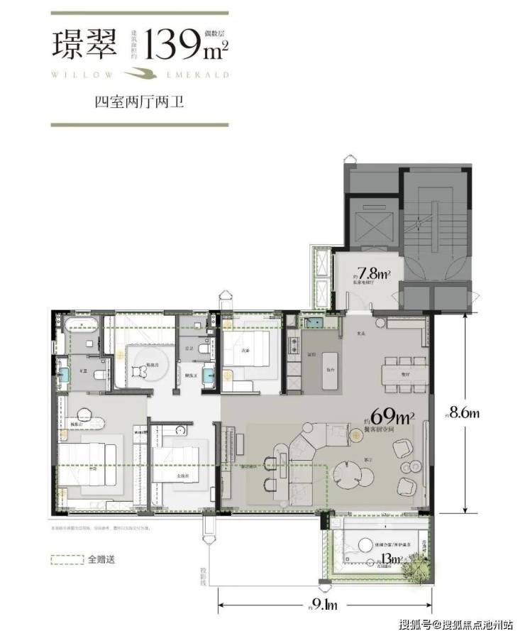 139㎡四房二厅二卫户型,则直接开启“狂飙”模式。