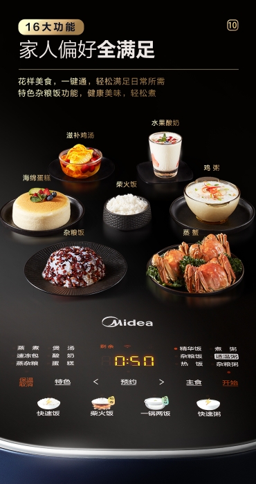 针对一家人不同的个性化需求,美的风动稻香IH电饭煲搭载了16项烹饪功能,无论是古早柴火饭、富含营养的杂粮饭,还是滋补靓汤、蛋糕酸奶,一键就能启动对应的快捷程序,健康又美味的花样美食轻松烹煮,满足全家不同口味的日常饮食需要。