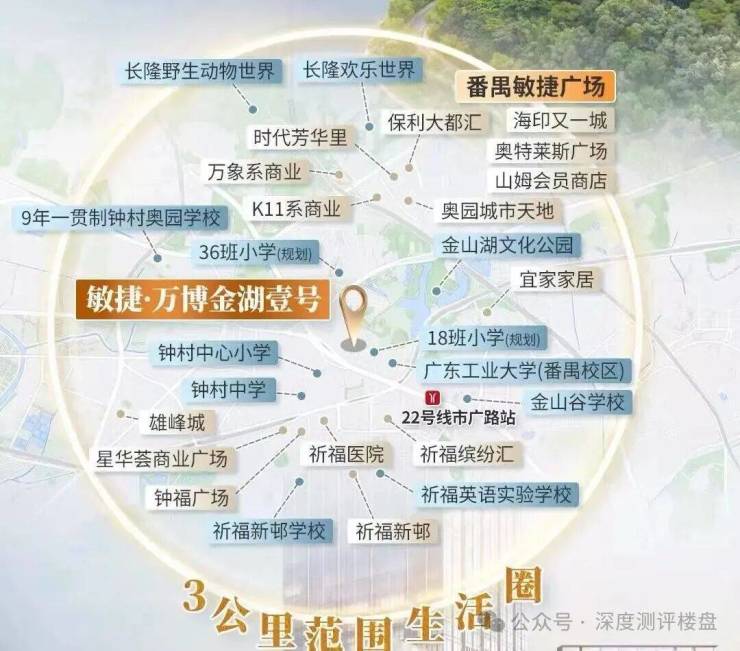 先看区位,敏捷金湖壹号位于番禺钟村街市广路北侧,虽案名冠以万博,实则处于万博CBD3公里辐射圈,属于祈福板块与万博板块的衔接地带,这种区位属性决定了项目闹中取静的核心特质。