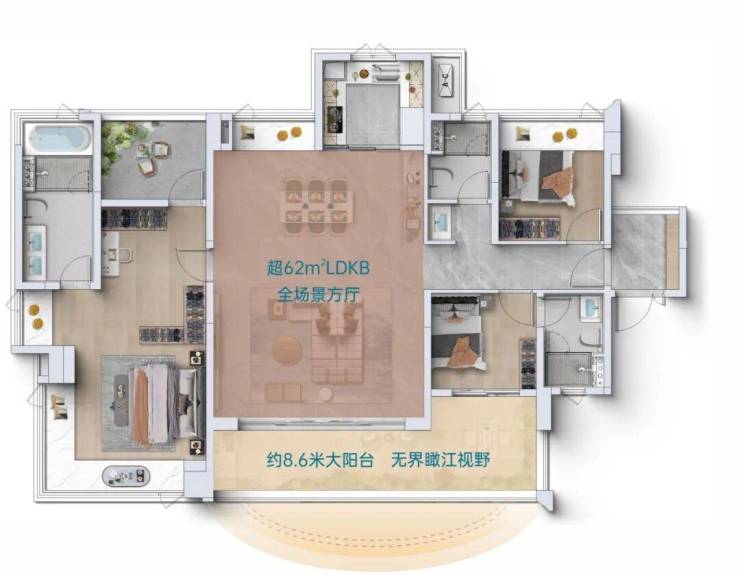建面约88-168㎡靠山瞰江2/3房+1空间