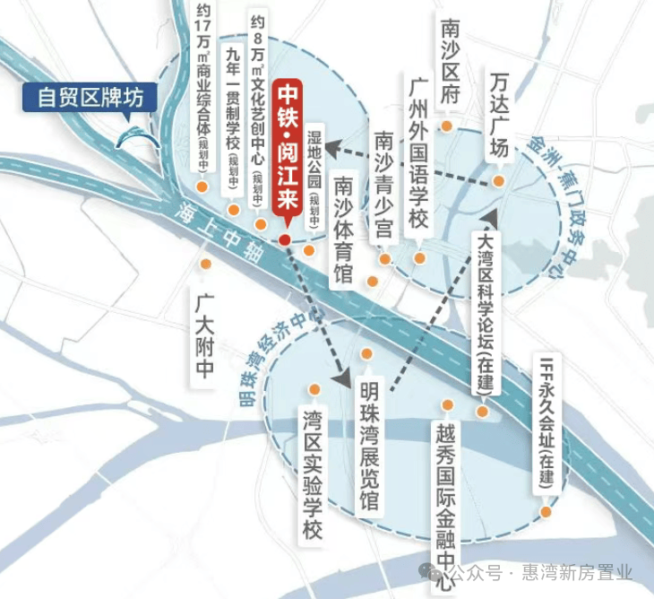 中铁·阅江来位于大湾区时代前沿的金融商务板块明珠湾板块,南沙的核心地带,蕉门中心板块与明珠湾起步区交汇处。