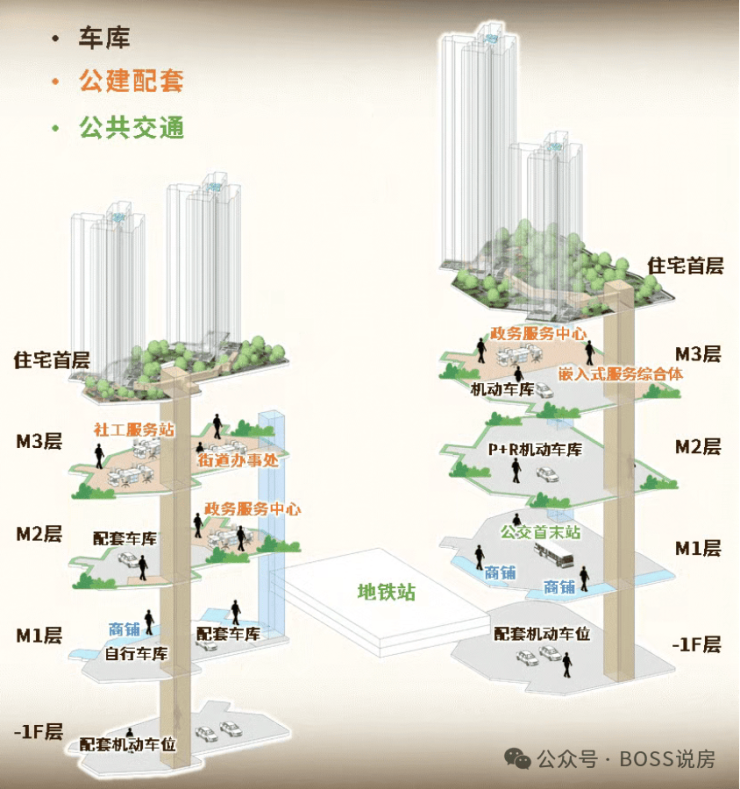 M1层部分车位,商铺还有公交车首末站,跟地铁站是同一个高度