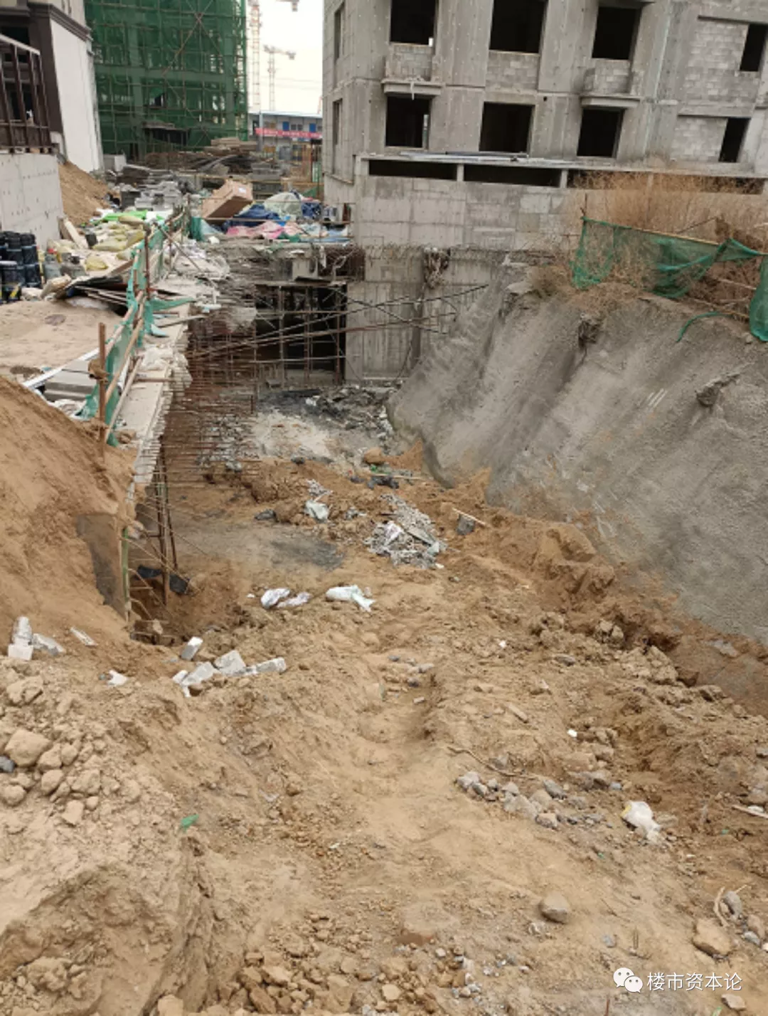 还有楼盘的车库入口,也是各种钢筋暴露,杂草丛生,黄土堆积。