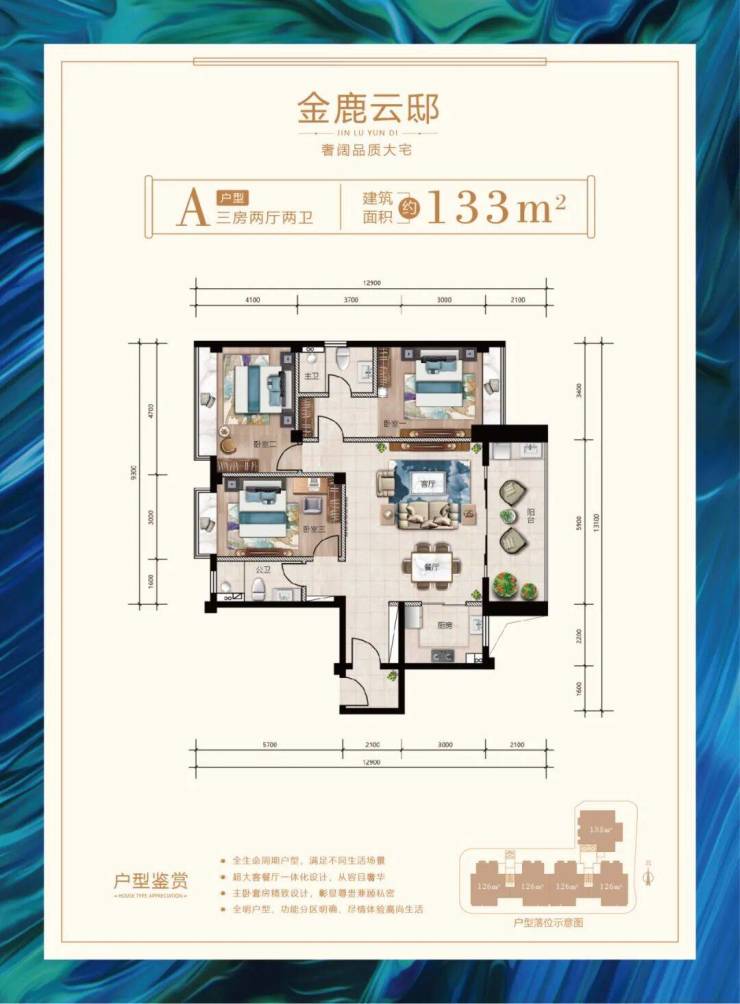 建筑面积约126㎡-133㎡奢阔品质大宅;