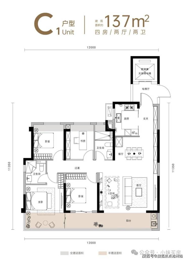而且这个户型,137㎡的面积卡在140㎡以内,契税有一定优惠。另外,独梯独户的137㎡仅有30套,下手要趁早哦。