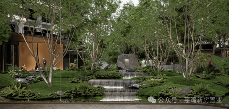 虹夕诺雅隐奢风格园林,以2.5横沥岛最低容积率与【中心花园最大化】设计理念,打造约3000㎡巨幅中心浮屿森庭,立体多维景观园林,密植椰树、红豆等乔木,丰富林下空间,带来更多绿量、更高生活质量。