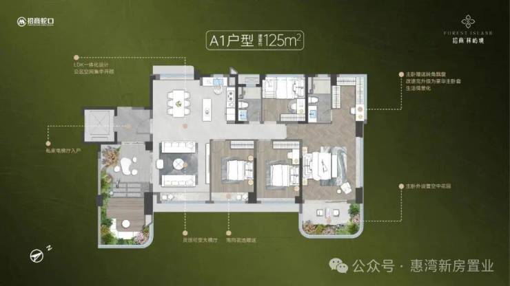125平比肩200平豪宅生活体验,享私梯入户,全尺度优于竞品,赠送共43㎡南北/纯南双6米露台。全功能空间尺度均优于旧规产品,比肩豪宅双动线入户。部分户型享超26㎡6米空中景观花园。赠送露台约等于2.9个传统客厅,5个传统次卧。