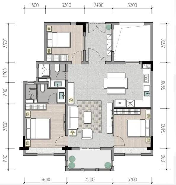 ·独立三卧:独立分布,私密性良好