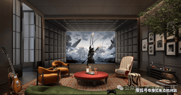 再看功能配置方面,不仅有健身房等常规功能,还有私宴厅、影音室、书吧等高级功能空间。