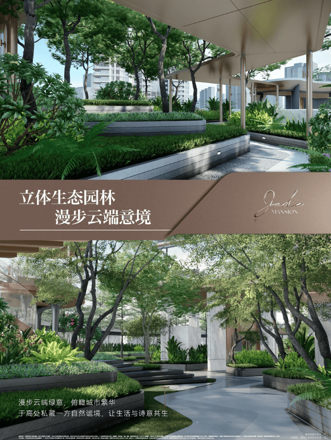 项目三层抬高设计让城市景与自然景巧妙融合,于此“半城繁华、半城诗意”转身即享。
