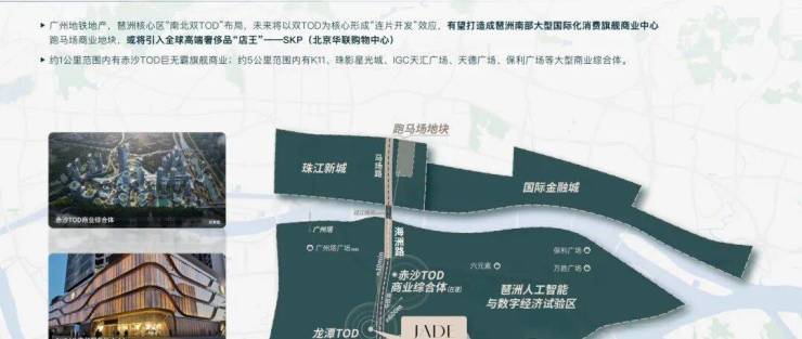 距离赤沙TOD旗舰商业中心仅约600米,约10-15分钟车程便可畅达广州塔、珠城等世界级商圈,珠金琶三大世界级商圈依靠一江两岸融合发展,有望打造成全国位居前列的世界级-超级商圈。