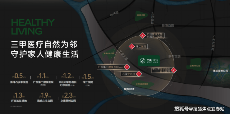 楼盘周边3公里范围内有14个一级及以上医院,包括中山大学孙逸仙纪念医院南院区(距离1.4公里)。
