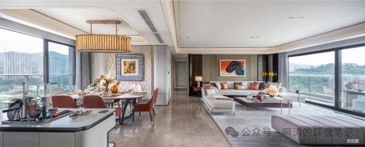 ◇大方厅/中西厨岛台设计/双主套设计奢阔空间尺度,全城罕见约8.3米南向观景阳台,270°一线广角山景大宅,赋予生活无限想象,定义城市进阶圈层。