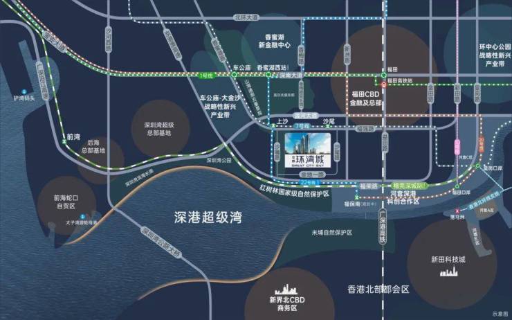 ·双地铁线:7号线双地铁口优势;22号线双地铁上沙交汇站(规划中),1站直达香蜜湖新金融中心与河套深港创新合作区。·超级口岸:皇岗口岸深度改造,深港唯一24小时陆路通关口岸,3城轨+2地铁,迅捷连通深港河套两地。·联港通沪:沪深高速磁悬浮规划,约2.5h通达沪深,链接“上广深港”南中国超级都会群。·城际轨道:全面覆盖广深科技创新走廊的穗莞深城际铁路,贯通大湾区重要科技核芯;深广中轴城际铁路,直连广深城市中心;香港北环支线,再添深港连通新轨道,便利畅达尖沙咀。