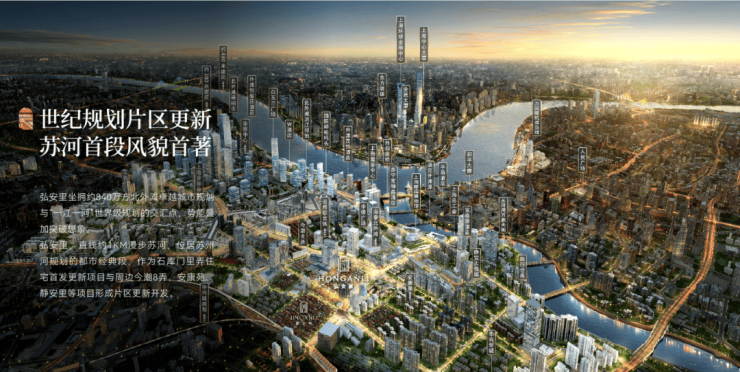 弘安里,直线约1KM漫步苏河,位居苏州河规划的都市经典段,作为石库门里弄住宅首发更新项目,与周边今潮8弄、安康苑、静安里等项目形成片区更新开发,在北外滩的天际幕后,在苏州河的润泽之地,打造苏河风貌住区。