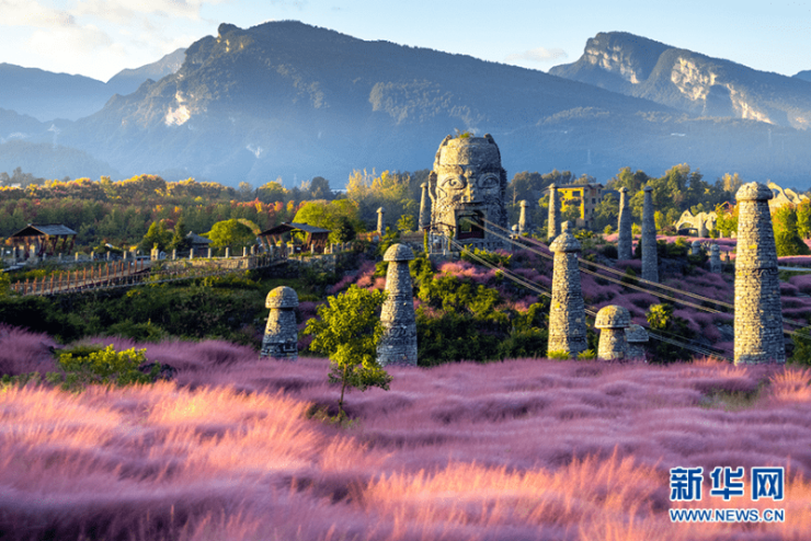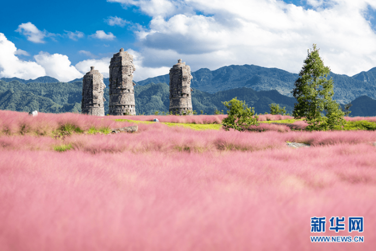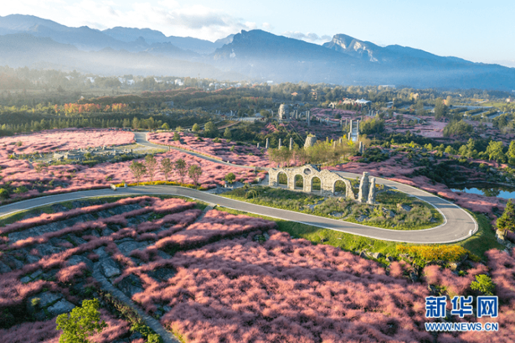 唯美浪漫的粉黛花海。新华网发(张坤琨 摄)