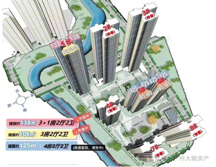 【合悦】A2组团滨水独栋2#上新,约110米超宽楼距,奢华无遮挡,三梯四户,户梯比例小,私密更尊贵;三面环水,围绕近1万㎡小区园林+3万㎡滨河公园,居住更舒适。