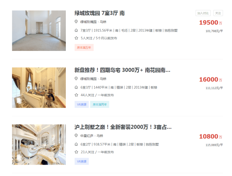 · 长宁中外环待售的容积率1.2墅区,联动价16.3万/㎡;