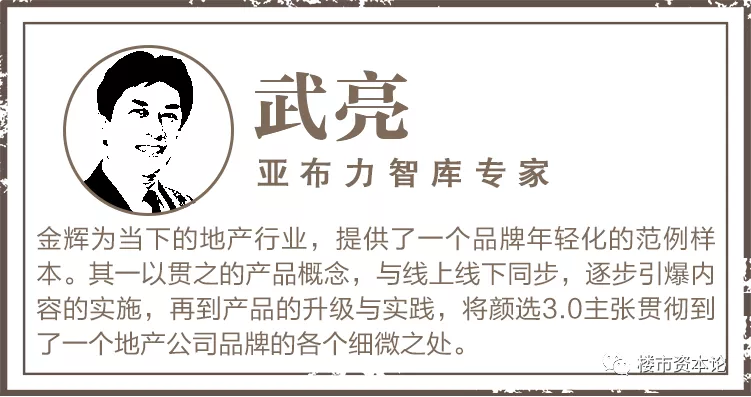 更关键的是,金辉为当下的地产行业,提供了一个品牌年轻化的范例样本。其一以贯之的产品概念,与线上线下同步,逐步引爆内容的实施,再到产品的升级与实践,将颜选3.0主张贯彻到了一个地产公司品牌的各个细微之处。不是单纯的向年轻人喊一句口号,而是从品牌到产品的体系化输出。