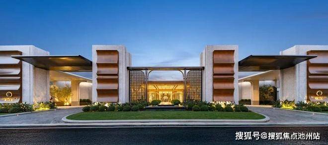 轴线对称式布局的社区大门,是业主归家的第一步,所有的柱廊,都经过了精确计算和排列,极具礼序感。