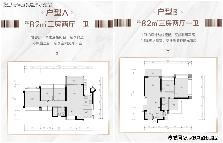 建面约82m²的户型:该户型最大的亮点在于充分考虑了刚需家庭需求,在空间设计上做了很多巧思,增加了空间的实用性。