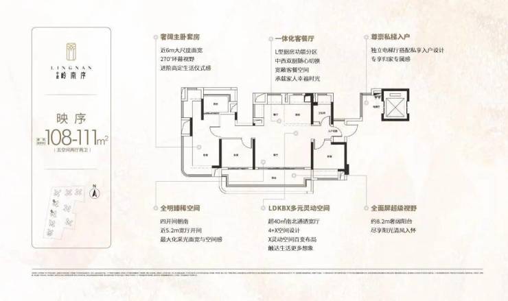 建面约108-141㎡超新规环幕奢宅,尺度升级 | 景观升级 | 舒适升级。全南向5空间,最大化采光面宽与空间感,而且做到全户型私梯入户搭配独立电梯厅,尊崇归家专属感。全屋中央空调+除湿新风系统+华为定制智能化(具体以交付为准,LDKBX多元灵动空间,主卧270°环幕视野。