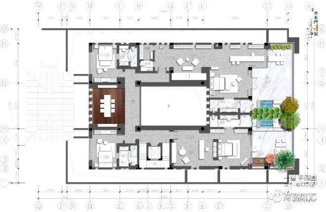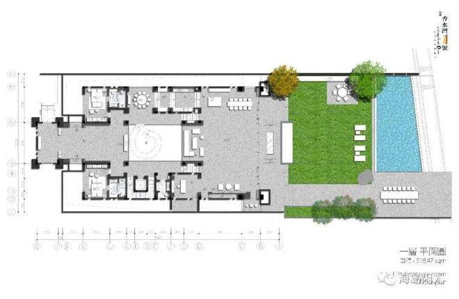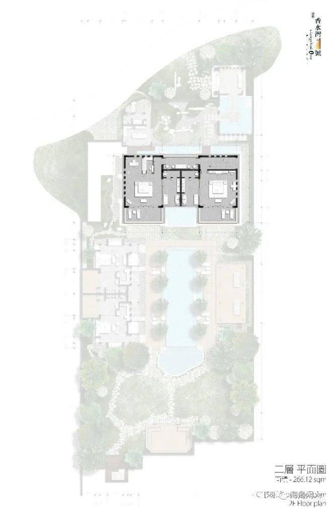 庭院西部双卧室对称而立,配套卫生间与室外淋浴间,尽赏超大泳池景观,起居室与餐厅、家庭室浑然一体,共赏中心庭院水木清华,四季芳菲愉悦身心。设保姆间、洗衣间、卫生间与中式厨房,主仆区域分明,大家风范可见一斑。