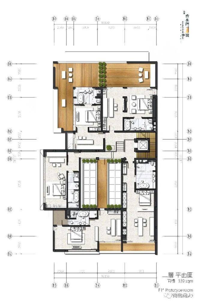 C1户型:建筑面积699㎡使用面积2275㎡,精装修,售价1.5亿