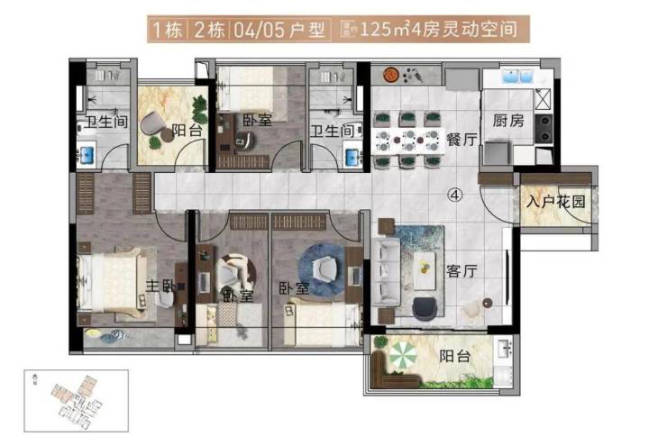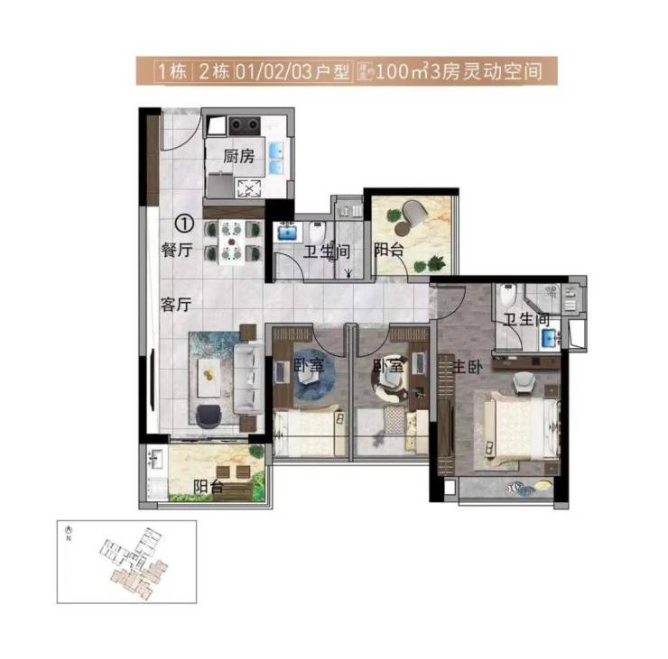 城芯品质户型:建面约100-125㎡全南向三至四房进阶人居蓝本