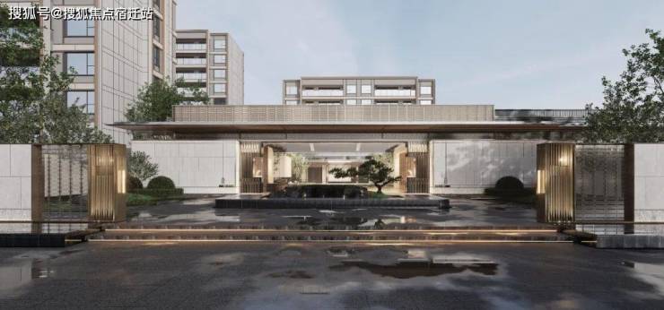 从之前公布的效果图来看,项目的门头采用了古铜铝板+石材打造,融入了白墙灰瓦、劲松流水等江南园林景观元素。