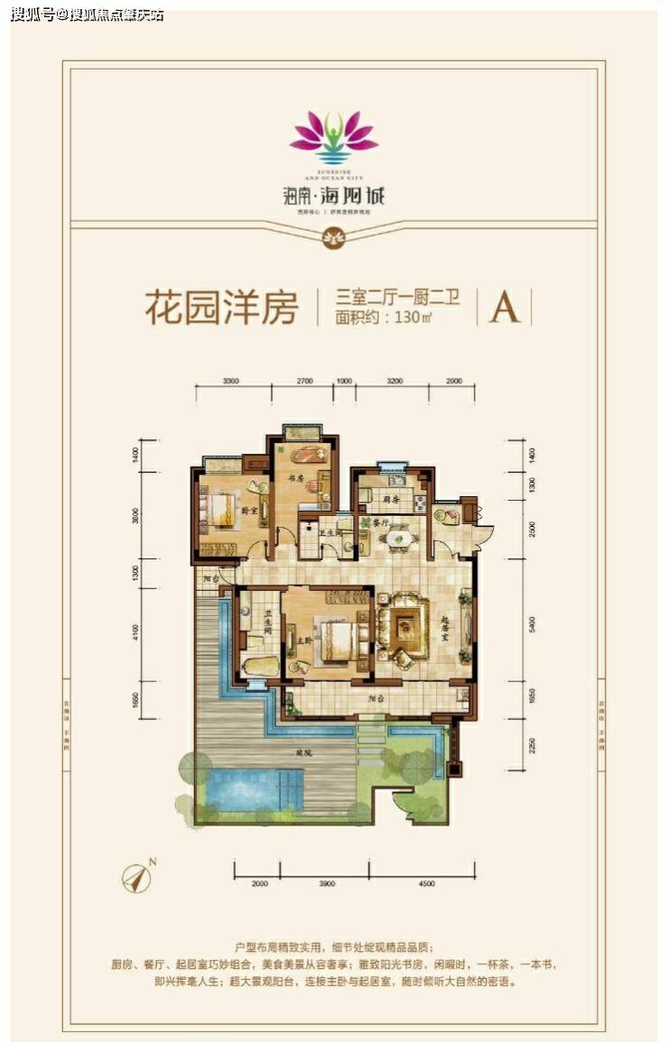 🏡花园洋房户型:84~130平米两房~三房户型私属庭院、休闲露台、南北通透,六层带电梯,一梯两户,层层退台设计。