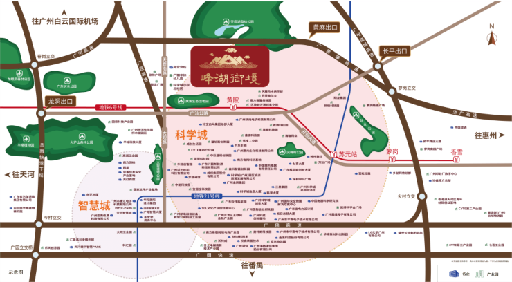 城市干线:多条主干线汇聚,广汕路、大观路、开创大道便达广州各主要商圈。