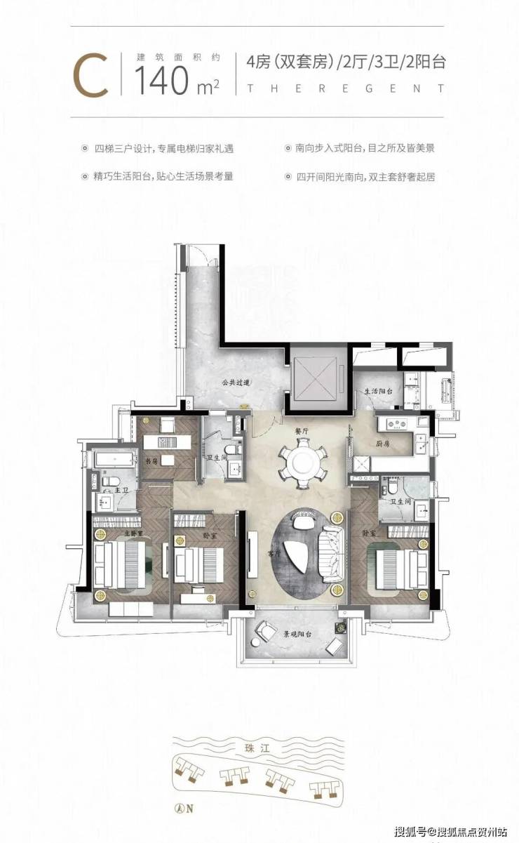 户型面积:140㎡-480㎡四房-六房双主套