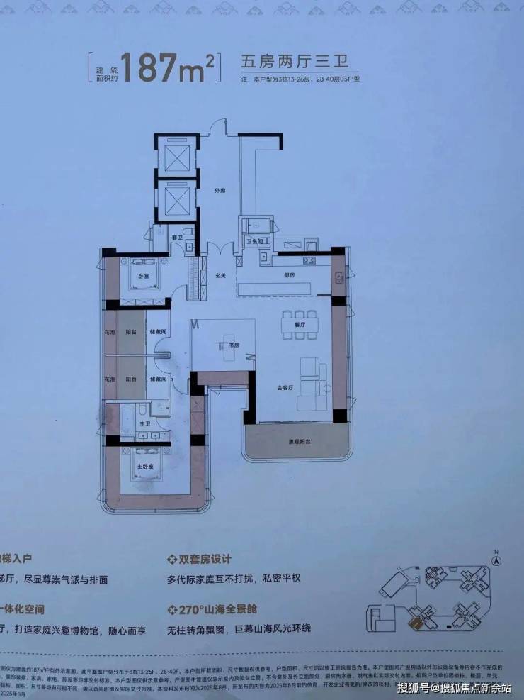 约55米超宽楼间距、0.6的黄金窗墙比远超常规住宅0.3-0.5的标准,呈现山景、海景、花园三重景观界面。