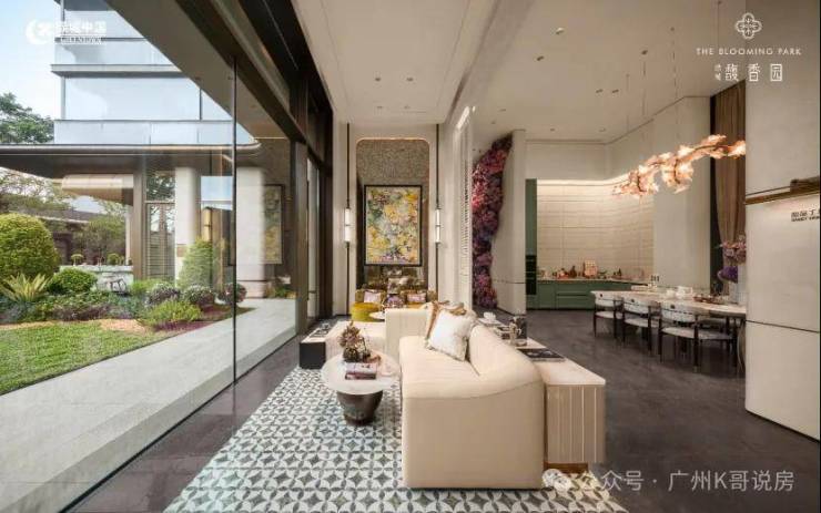 下沉式观瀑亭、露天社交会客厅,水院、园林及各种鲜花交织,仿若置身伊甸花园谧境。
