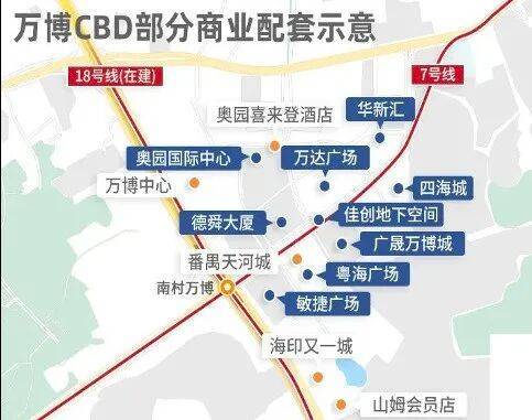 同样在 10 分钟范围内,万博中心的商业魅力也不容小觑。这里配备了番禺天河城、山姆会员店等成熟国际化城市配套。而万博商圈的实力更是惊人,万博 CBD 已集结了番禺万达广场、粤海天河城等 10 个商业体,以 160 万方体量超越了天河路商圈,为居民带来国际化的消费体验。