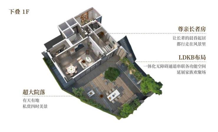 上叠享露台,中、下叠享庭院;户享专属电梯厅,灵动地下空间,多套房配置,高拓空间,朗阔生活从容有度。