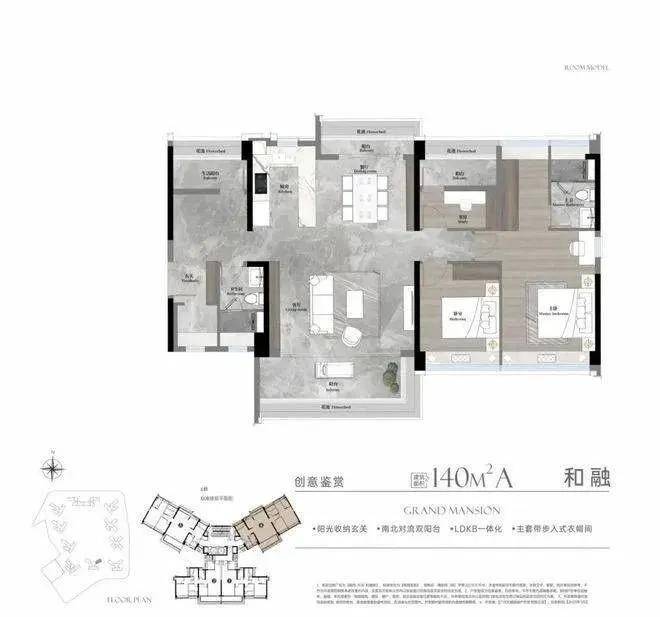 越秀·天河·和樾府推出的建面约180㎡户型,以其卓越的设计理念脱颖而出。该户型南向开间宽敞,实现了4.5面的南向面宽,增强了室内的采光通风效果。层高升级至3.1米,并采用LDKB一体化设计,增加了空间的通透感。主卧采用了“小家化设计”,可承载更多的活动场景,方便布置化妆间、游戏空间、阅读角等功能区。此外,项目还推出了其他多种户型,如140㎡南向IMAX宽幕央座、108㎡南瞰城市中轴景观等,满足不同家庭结构的需求。