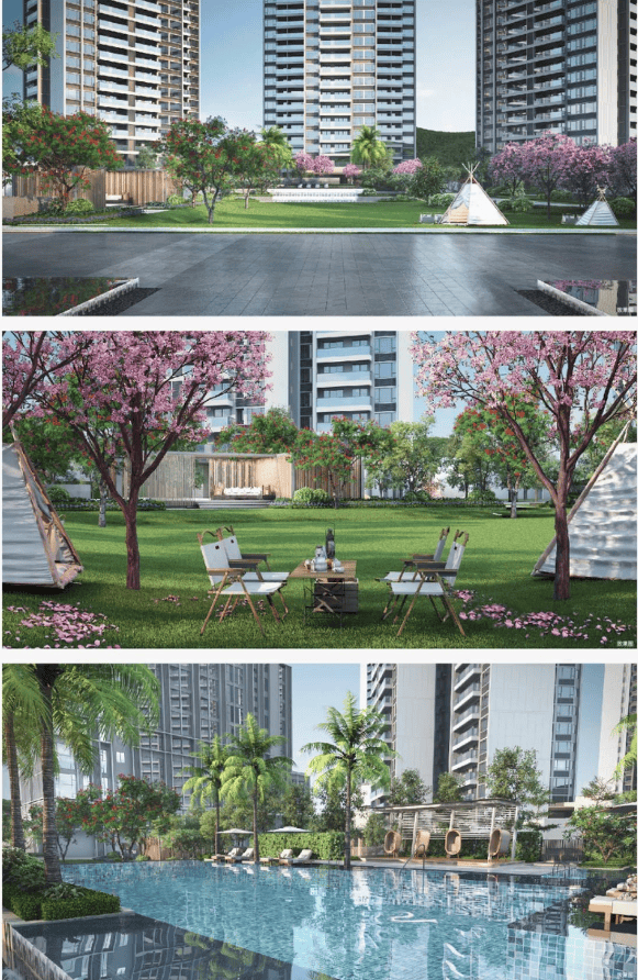 项目以中央园林为核心,匠心打造围合式景观布局,让建筑与自然诗意相融实现户户有景,营造私密且独立的场域感。以匠心独运的设计和全方位的贴心考量,精心打造追光草坪、阳光泳池、无界泛会所等多元空间,将读、会客、休闲等功能巧妙融入园林,缔造归家即度假的松弛生活。